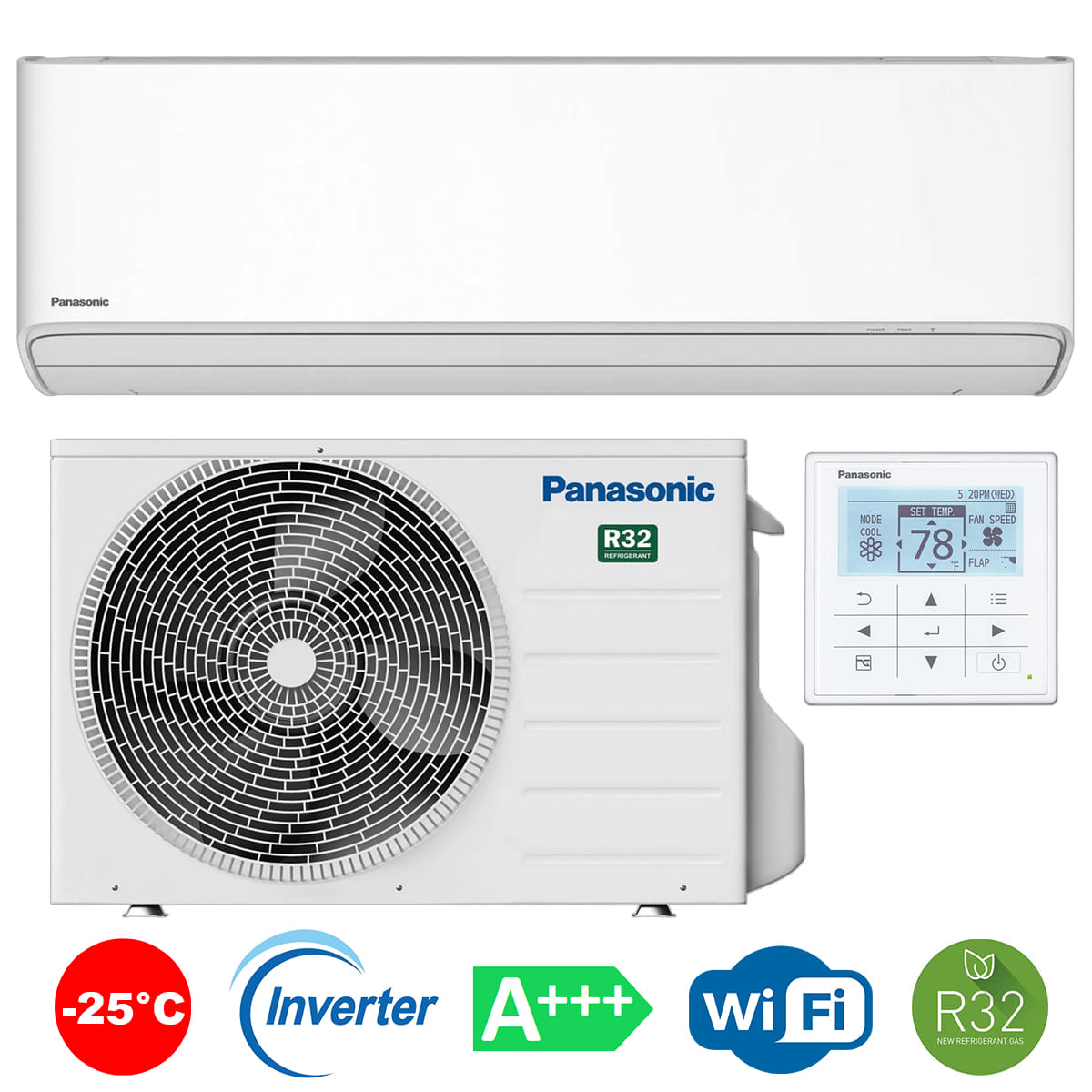 - Wi-Fi керування — вбудований адаптер дозволяє управляти кондиціонером через додаток Panasonic Comfort Cloud зі смартфона або голосом.